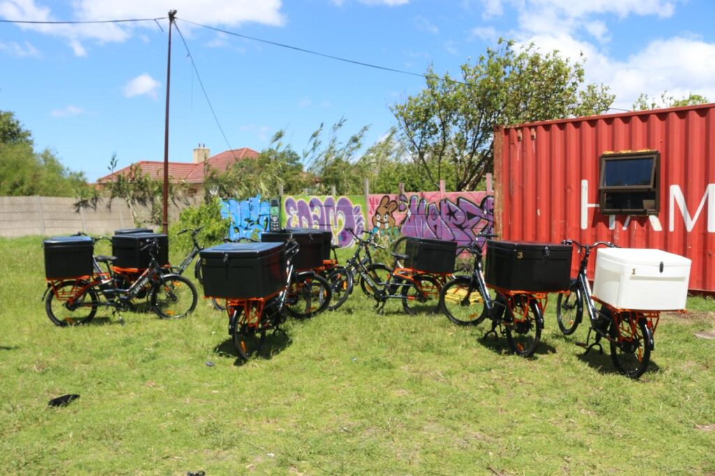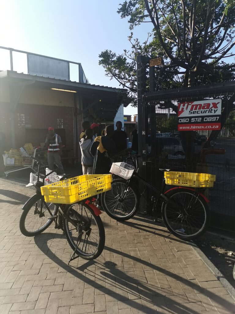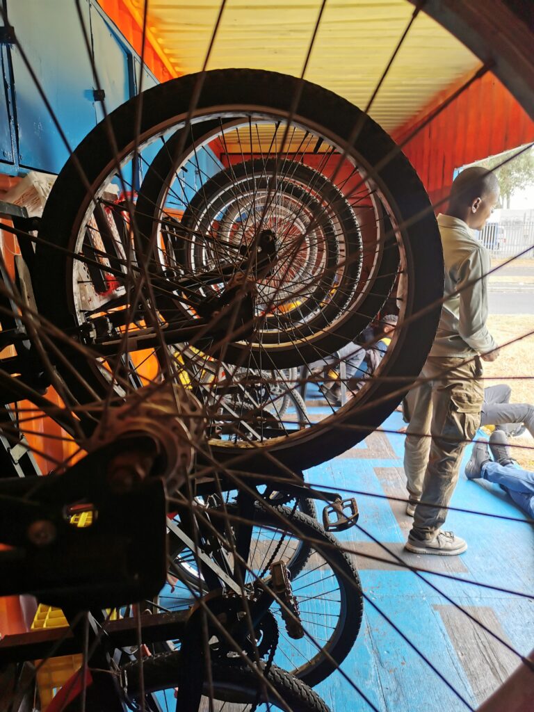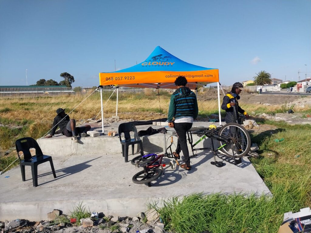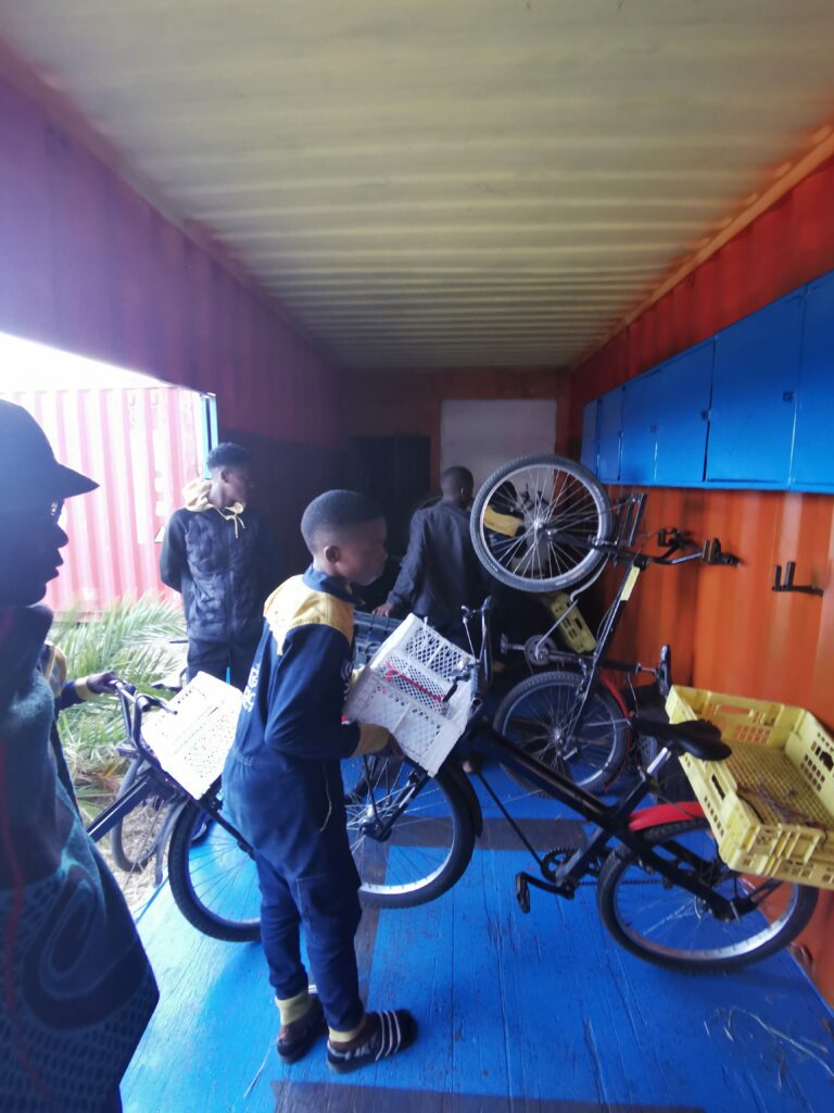Es durfte nicht sein, dass die Zukunft und das Vertrauen sovieler Menschen von einem Tag auf den anderen in den Sand gesetzt wird. Mit viel Kreativität und noch mehr gutem Zureden und Willen wird ein Provisorium errichtet, wo sich die Jugendlichen wieder treffen können, damit der Lieferdienst weiter funktionieren kann. Nachts werden die Velos in den Wohnhütten der Fahrer in Sicherheit gebracht. Man darf wenigstens von Glück reden, dass in Südafrika gerade der Sommer begonnen hat.