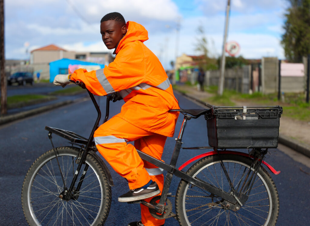 Nach zweimonatigen Testphasen entscheidet sich Cloudy Deliveries, diesem Typus E-bikes (und seinem Hersteller und Lieferanten) zu vertrauen und neun Modelle anzuschaffen. Nachdem auch der Aufbau für die Bedingungen in Langa modifiziert wurde, werden die Fahrräder in den Dienst aufgenommen. Für die zukünftigen Fahrer gibt es aber verschiedene Bedingungen: Sie müssen zuverlässig sein und eine kleine Verkehrskundeprüfung bestehen. Hier gilt: Nur die besten kommen in den Genuss – für viele ein Ansporn, weil sie dazu gehören wollen. Der Velomechaniker des Teams sieht sich damit mit neuen Aufgaben konfrontiert und freut sich auch auf die Herausforderung.
